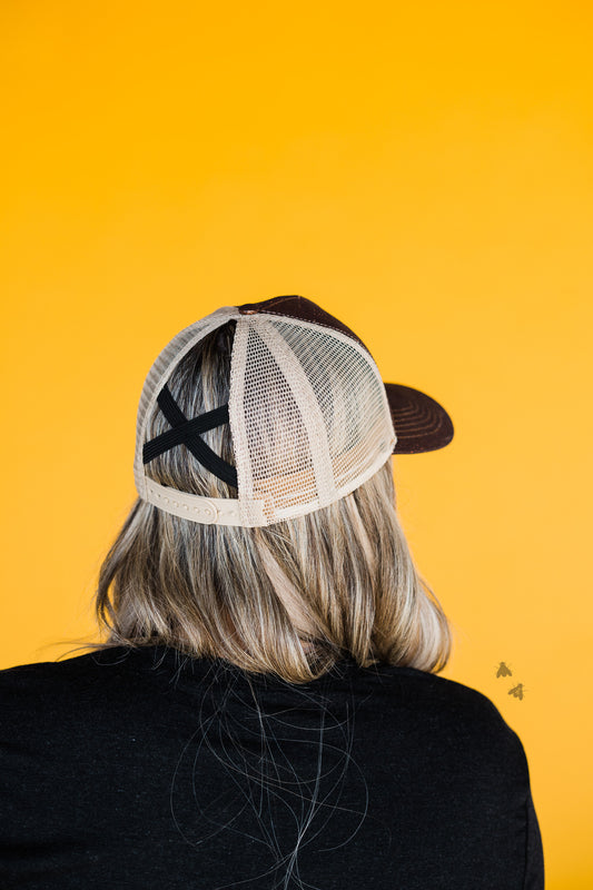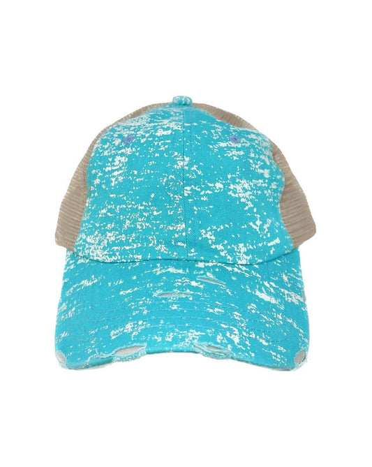 GIRLS Beige, Brown and Turquoise Distressed Hat