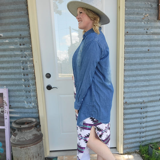 Long Denim Button Up - Dark Wash