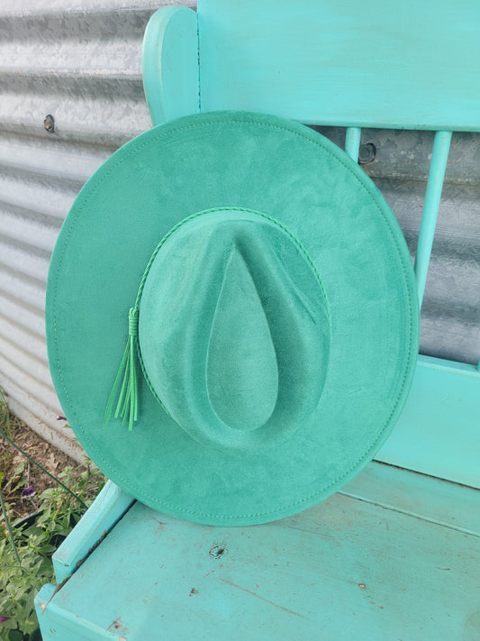 Atlas Faux Suede Fedora w/ Braided Band: Green