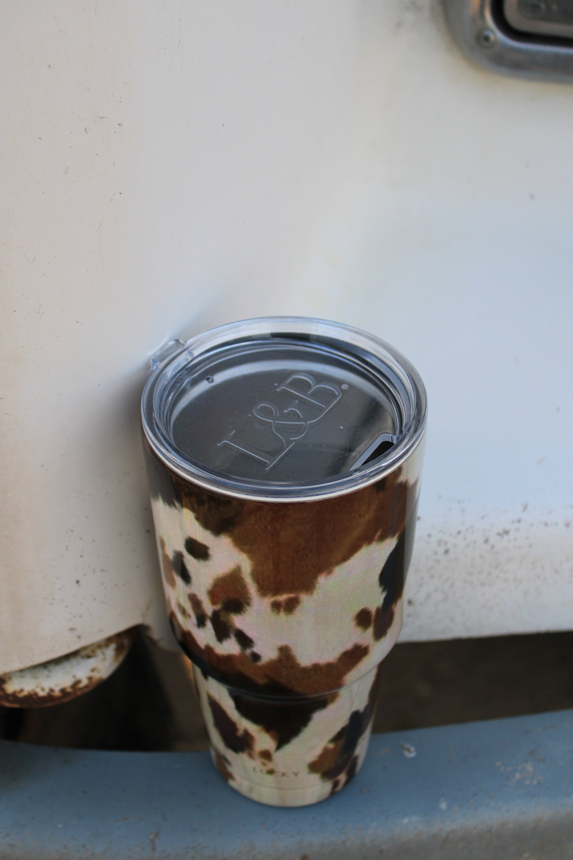 Wrangle your morning coffee with style. This 20 oz insulated tumbler features a bold cowhide print that's as rugged as your adventures. Double-wall insulation keeps drinks hot or cold for hours, while the secure lid prevents spills on the go. Perfect for road trips, camping, or just looking good at the office. Durable and dishwasher-safe—because life's too short for boring drinkware.