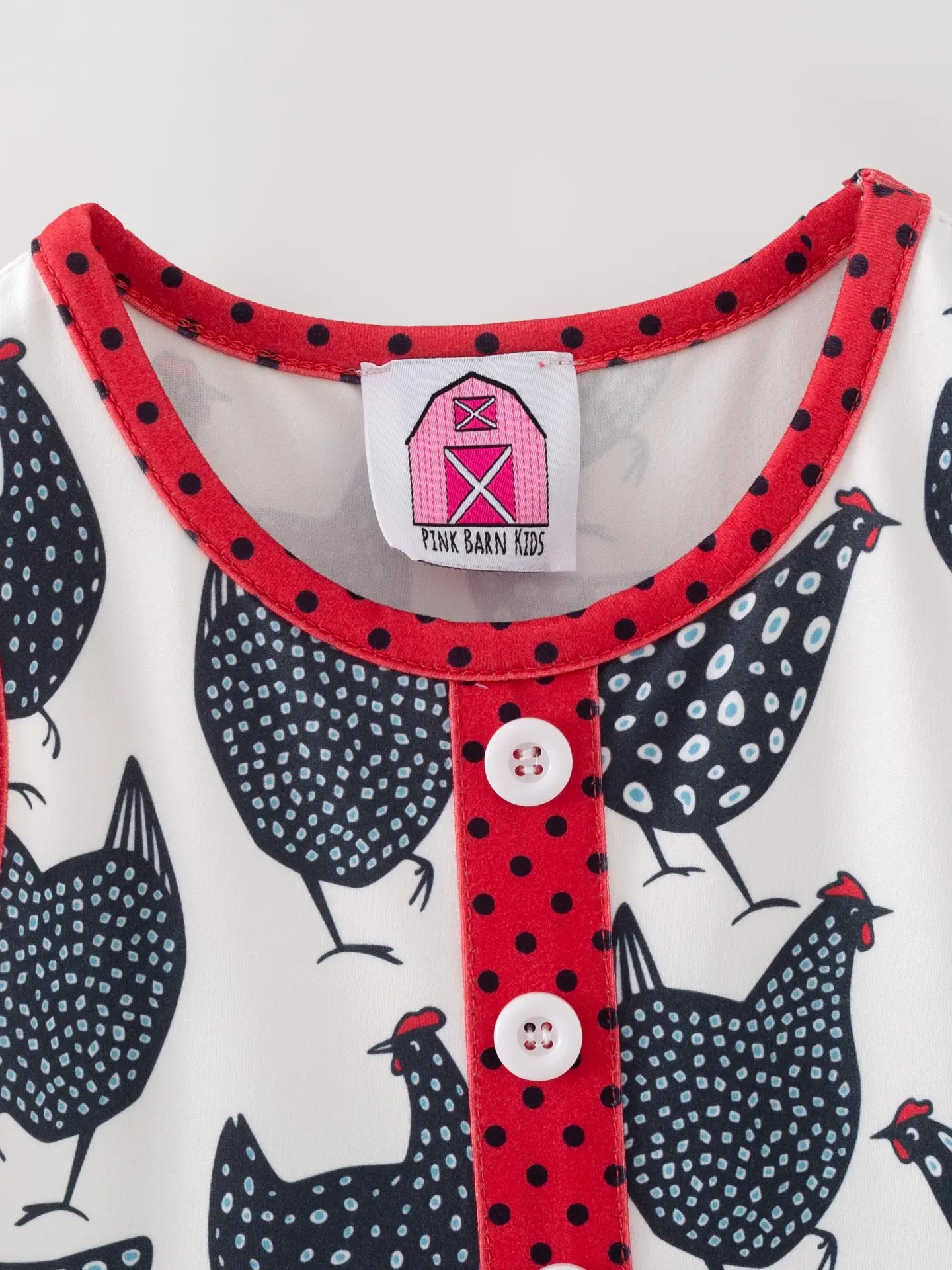 This is one for your little chicky! The cutest dress you will ever see. Not only do you need chickens on your farm but who doesn't need them on a dress?! Cute, comfy, and it has POCKETS!