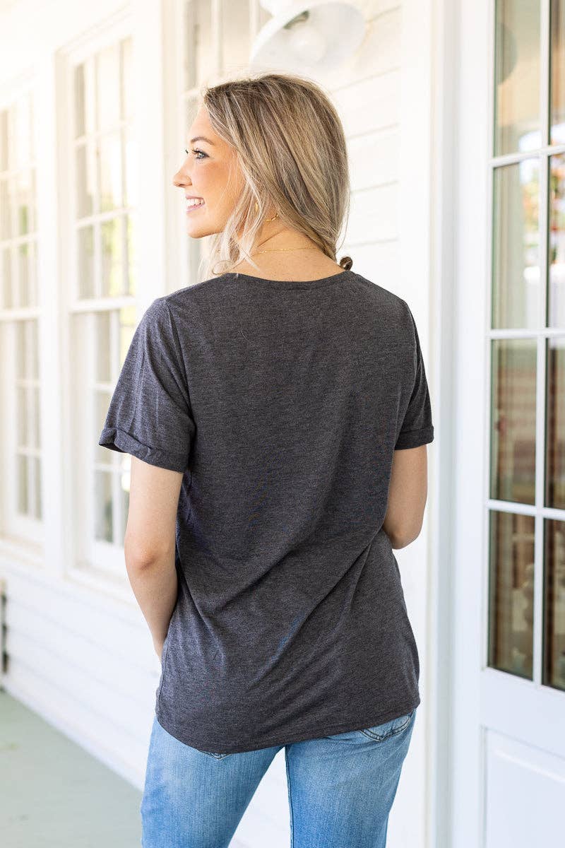 Our Heathered Grey Crewneck Cuff Tee from Southern Grace is a must-have in every woman's wardrobe. This tee combines everyday comfort with style. Easily transitions from a casual day on the farm to a fantastic night out.