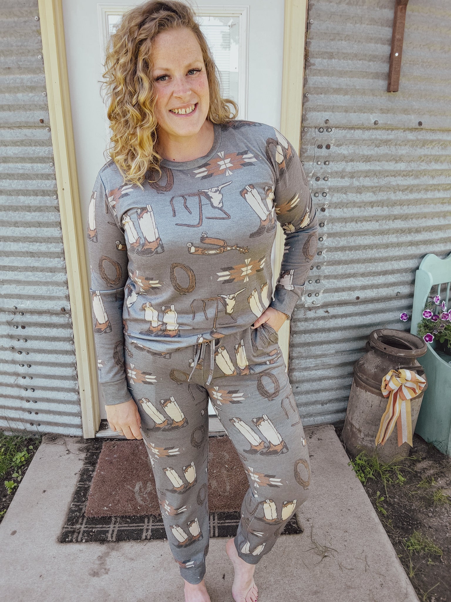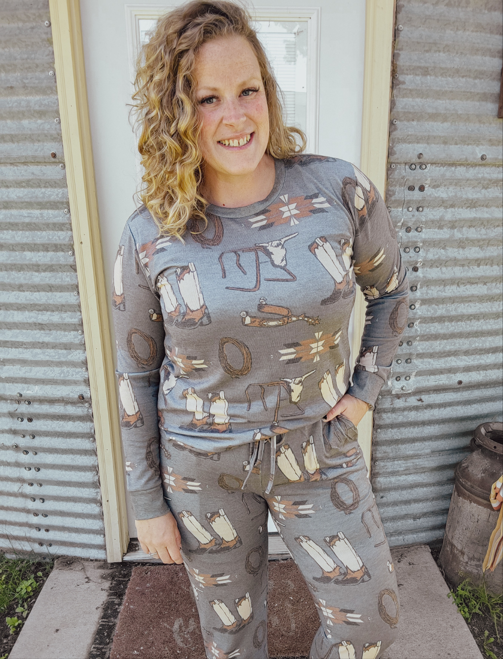 You've got the Boot Scoot, now get your new favorite pattern from 2 Fly! Introducing the Loungy Lariat- Westy West top... wear it as a set with the JOGGERS or break it apart and STYLE IT.. Featuring all the western goodness - we are loving this!