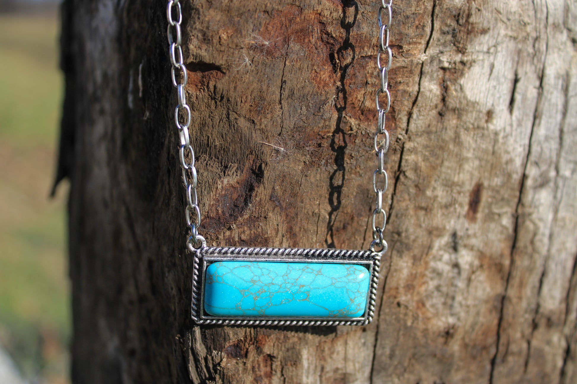 Accessorize with this gorgeous blue turquoise faux turquoise bar necklace! You could seriously wear it with anything... Work event? Yep. Christmas party? Absolutely. Burlap sack? Perfect. No matter the occasion, throw on this little pop of fun!